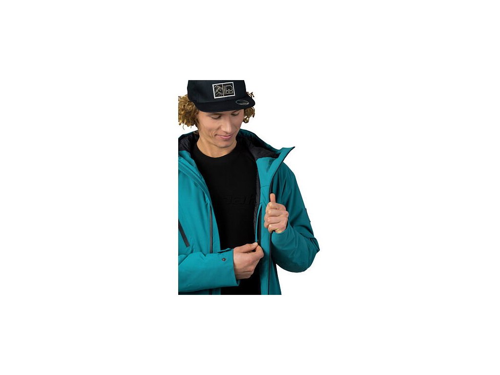 Také centrální zip bundy je voděodolný. Na cennosti slouží 1 vnitřní zipová kapsa. Aby sis bundu nastavil podle své postavy, nalezneš stahování v zadní části kapuce, na spodním lemu i na koncích rukávů prostřednictvím patky s drukem. Buď trendy i za deště a užívej si volnosti v příjemné a pohodlné bundě Derk.