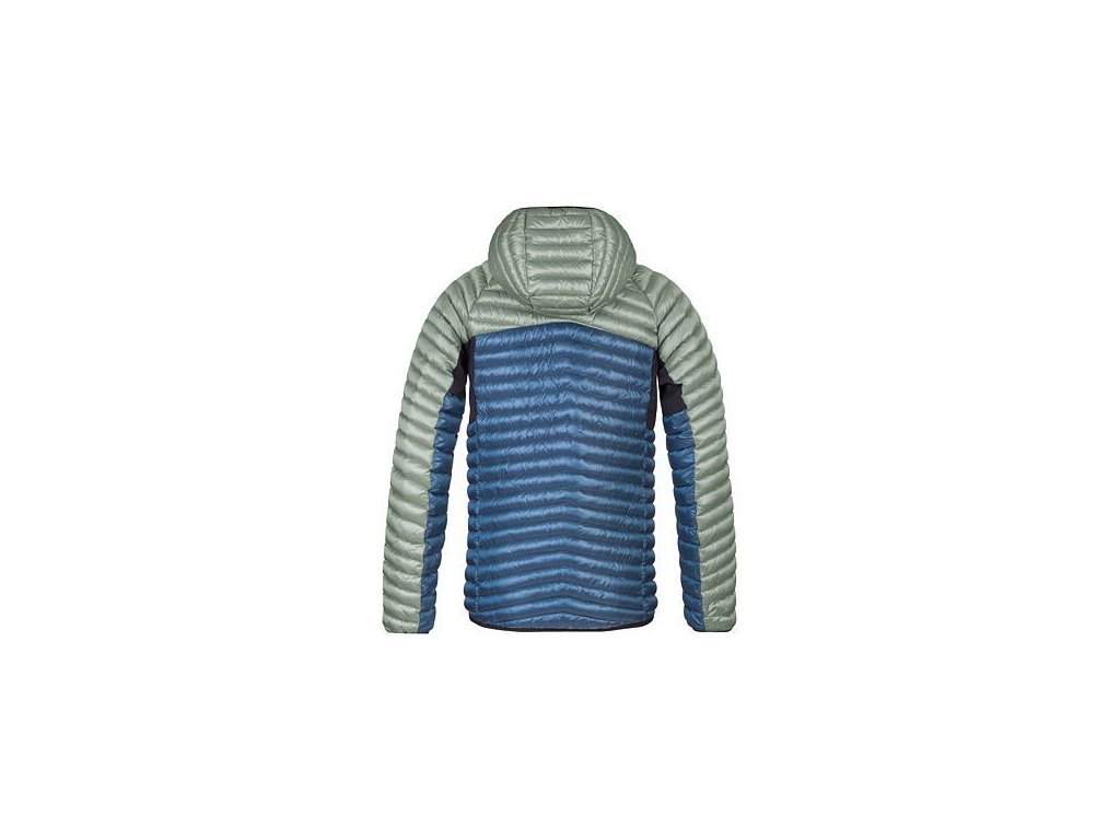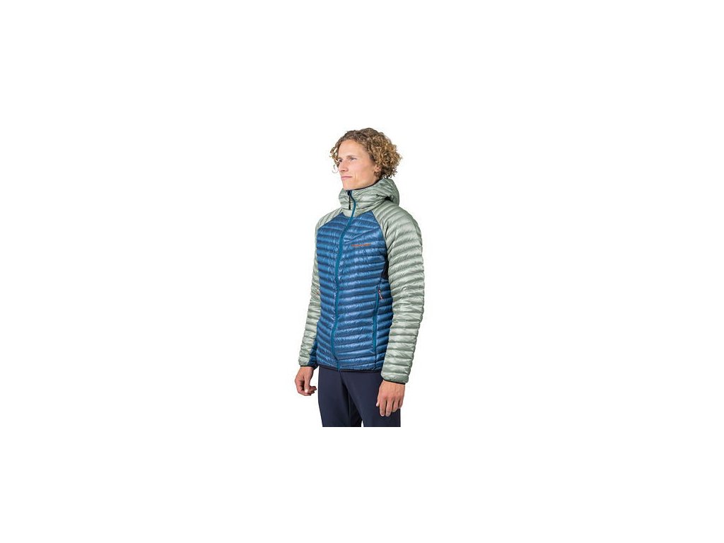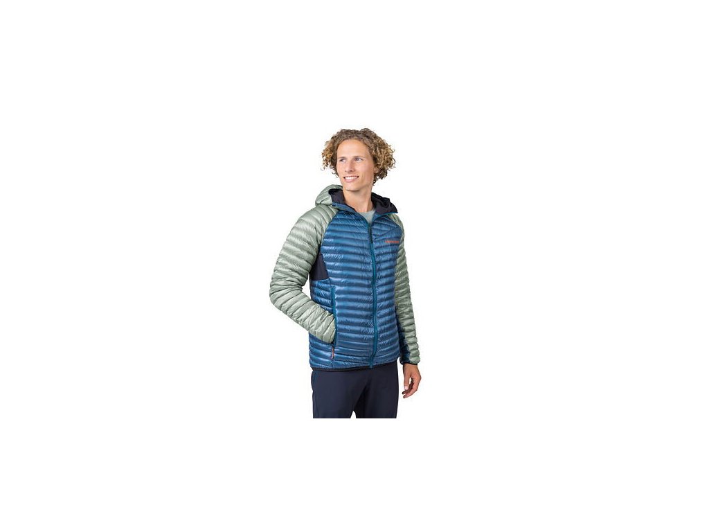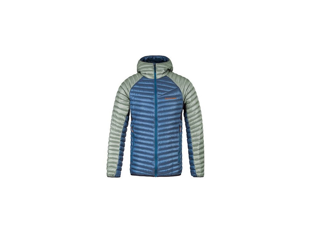 Prachové kachní peří pochází z certifikovaných farem a zpracovává se v souladu s životním prostředím. Bunda poskytuje výborný tepelný komfort v kombinaci s nízkou váhou a sbalitelností do přiloženého transportního obalu. Svrchní lehký a pevný materiál Airlite DMF od japonského výrobce spolehlivě zabraňuje pronikání péřových vláken vně. Samozřejmostí u takového typu bundy je sportovní střih s anatomicky tvarovanými rukávy a zakončením spodního okraje, rukávů a kapucí pružným lemem.