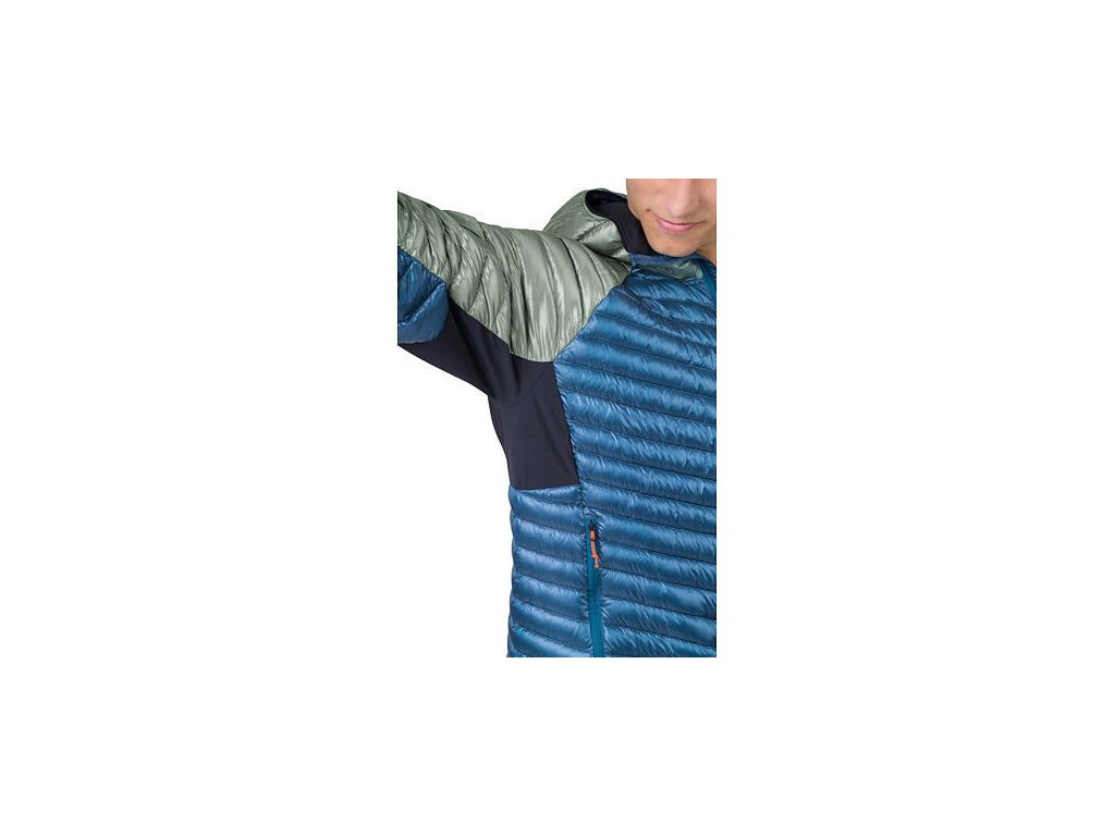 Pánská odlehčená péřová bunda s povrchovou úpravou materiálu proti nasákavosti. Pružné panely v podpaží umožňují uvolněný pohyb a komfort při nošení. Technologie komorového plnění obsahuje vysoce kvalitní kachní peří v poměru 80/20 s plnivostí 750 cuin.