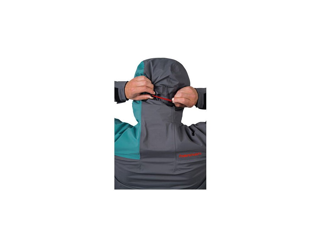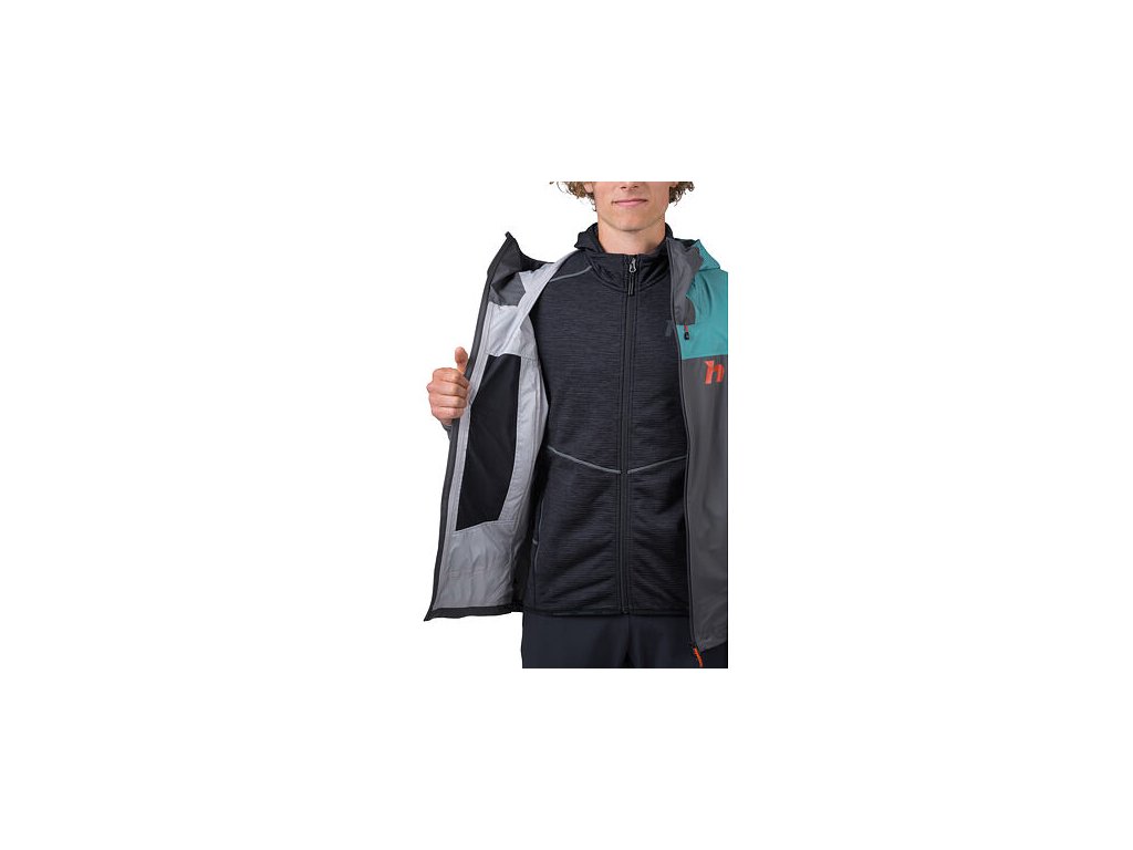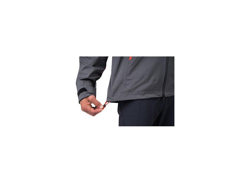 Sportovní vyúžený střih s regulací šířky dolního lemu a ergonomicky tvarovanými rukávy zakončené stahováním lepenou patkou na suchý zip. Voděodolné kvalitní YKK zipy na kapsách a hlavním zipu, regulovatelná kapuce kompatibilní s helmou a kompletní lepení všech švů je zásadním parametrem pro všechny náročné uživatele a jen dokresluje technické využití bundy. Odvětrávání je řešené skrze výše umístěné hlavní kapsy, takže je snadno dosažitelné i při nošení batohu.