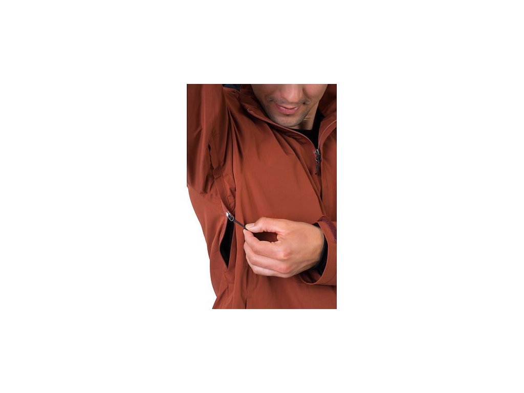Bunda má Regular neboli rovný střih s anatomicky tvarovanými rukávy zakončené lepenou patkou na suchý zip. Membrána s vodním sloupcem 10 000 a kompletně podlepenými švy zajistí 100 % nepromokavost a prodyšnost. Odvod přebytečné vlhkosti je podpořen přidaným odvětrání v podpaží na zip krytý lepenou légou. Centrální nepromokavý zip je navíc decentně skrytý lepenou légou.
