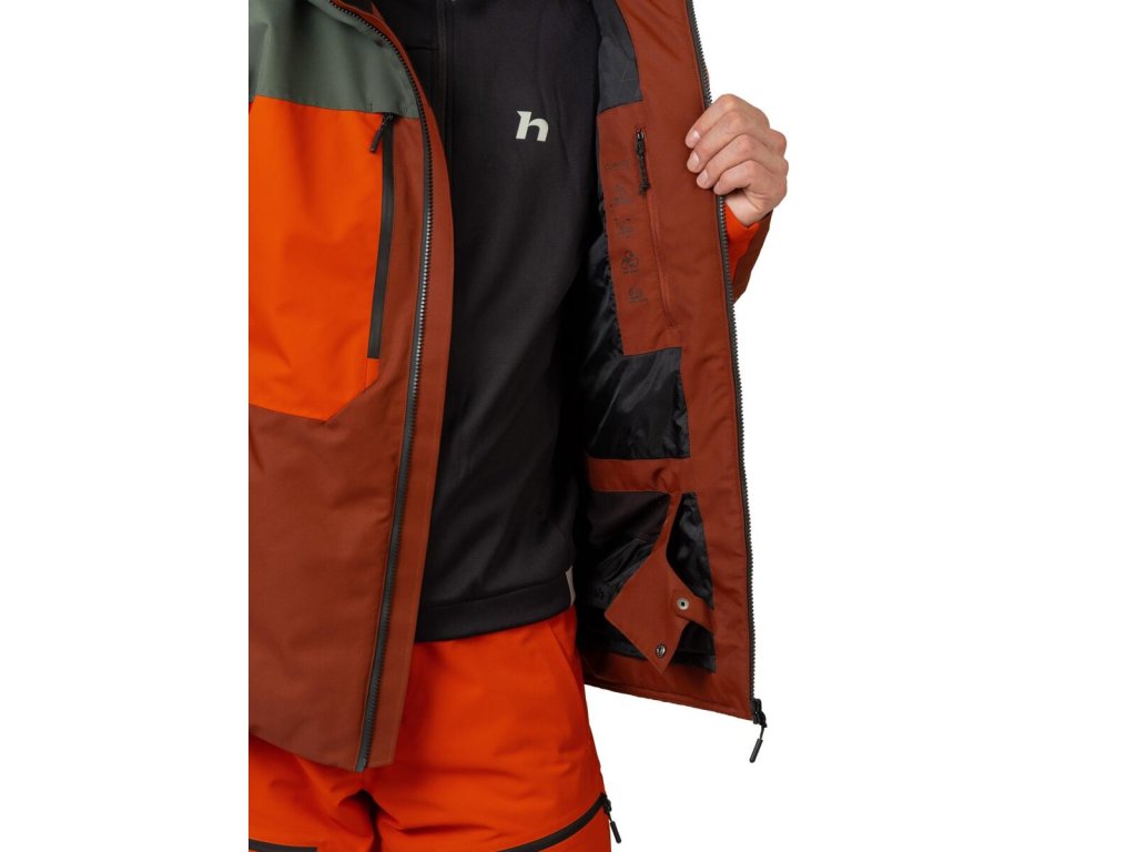 Od voděodolných YKK zipů na centrálním zipu a hrudních kapsách, dále odvětrání v podpaží, vnitřní systém kapes a sněhový límec v pase. Anatomicky tvarované rukávy s kapsou na zip na skipas jsou zakončené stahováním patkou se suchým zipem. Vnitřní elastické rukávové manžety s otvorem na palec snižují únik tepla a zároveň zajistí, aby sníh zůstal tam kde má. Systém propojení bundy a kalhot umožňuje snadné připnutí lyžařských kalhot Hannah Wiel.