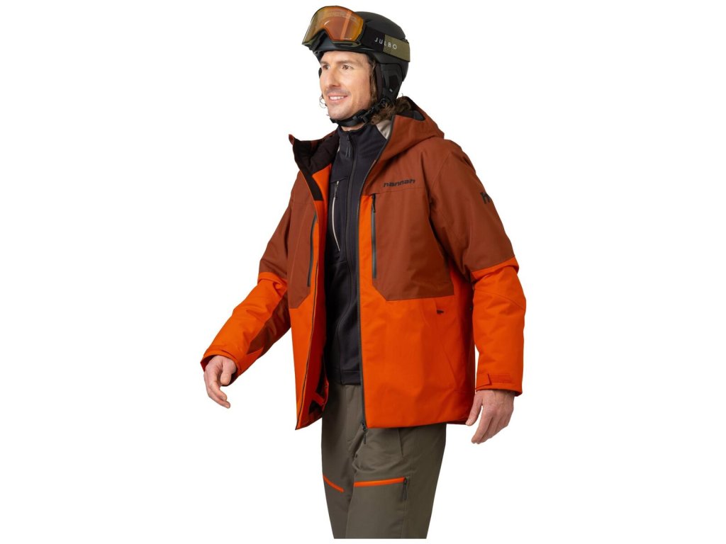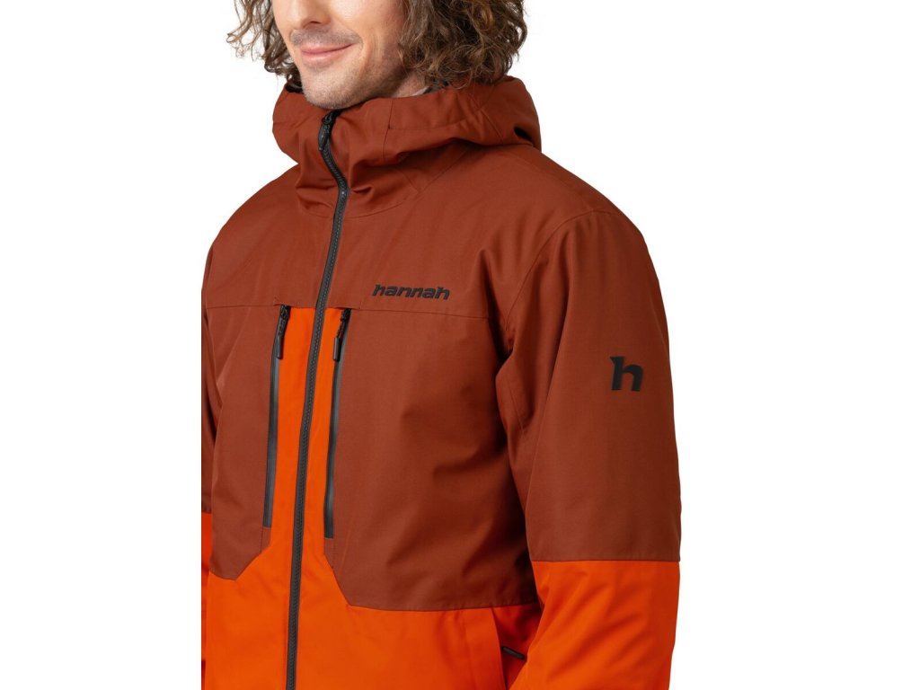 Od voděodolných YKK zipů na centrálním zipu a hrudních kapsách, dále odvětrání v podpaží, vnitřní systém kapes a sněhový límec v pase. Anatomicky tvarované rukávy s kapsou na zip na skipas jsou zakončené stahováním patkou se suchým zipem. Vnitřní elastické rukávové manžety s otvorem na palec snižují únik tepla a zároveň zajistí, aby sníh zůstal tam kde má. Systém propojení bundy a kalhot umožňuje snadné připnutí lyžařských kalhot Hannah Wiel.