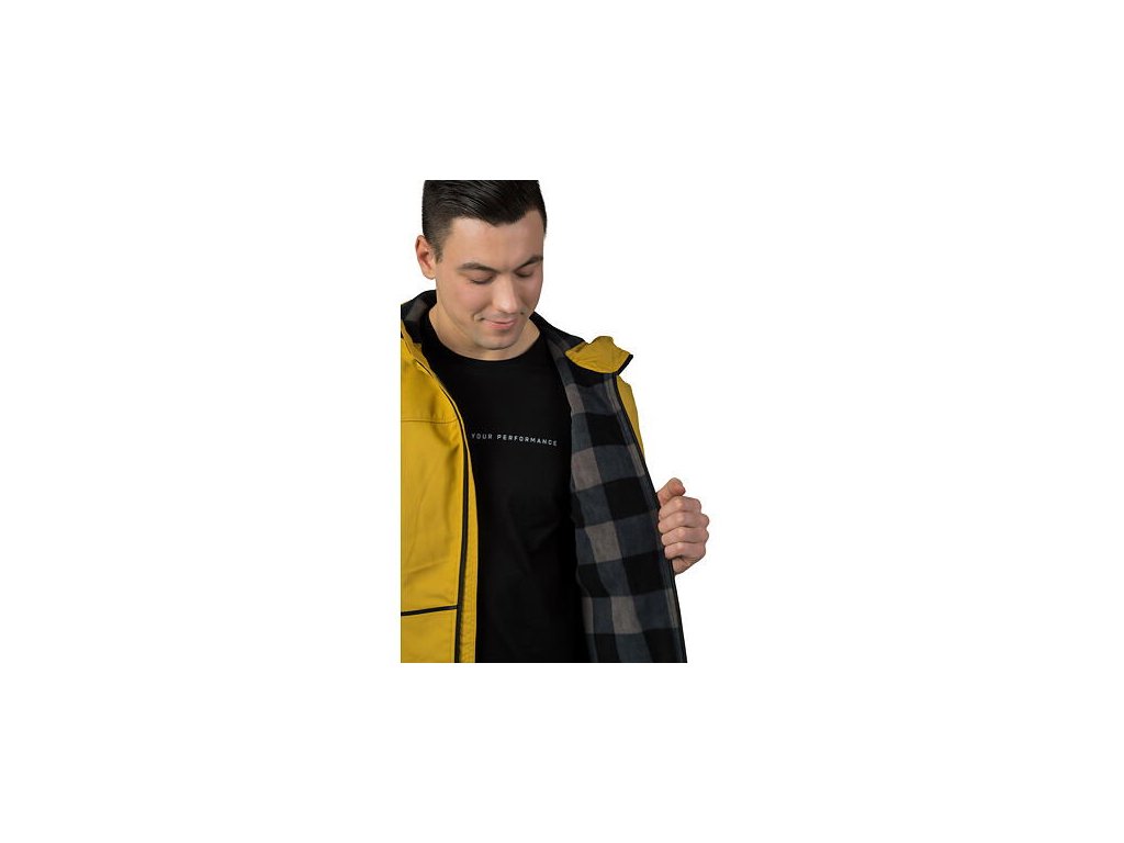 Bunda je vyrobena z 3-vrstvého pružného softshell materiálu s membránou 8000, která zajistí větruvzdornost, nepromokavost a neomezuje prodyšnost směrem ven. Vnitřní kostkovaná fleece podšívka plní funkci tepelné izolace, proto bunda najde uplatnění v chladnějších podmínkách. Svrchní materiál má povrchovou DWR úpravu, která zajišťuje vodoodpudivost a nenasákavost materiálu.