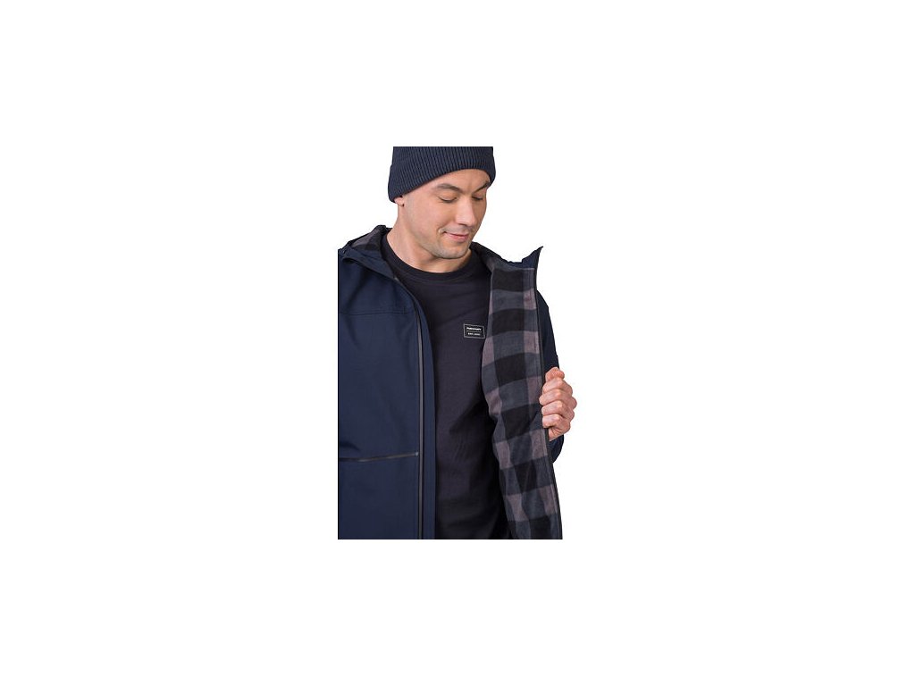 Bunda je vyrobena z 3-vrstvého pružného softshell materiálu s membránou 8000, která zajistí větruvzdornost, nepromokavost a neomezuje prodyšnost směrem ven. Vnitřní kostkovaná fleece podšívka plní funkci tepelné izolace, proto bunda najde uplatnění v chladnějších podmínkách. Svrchní materiál má povrchovou DWR úpravu, která zajišťuje vodoodpudivost a nenasákavost materiálu.