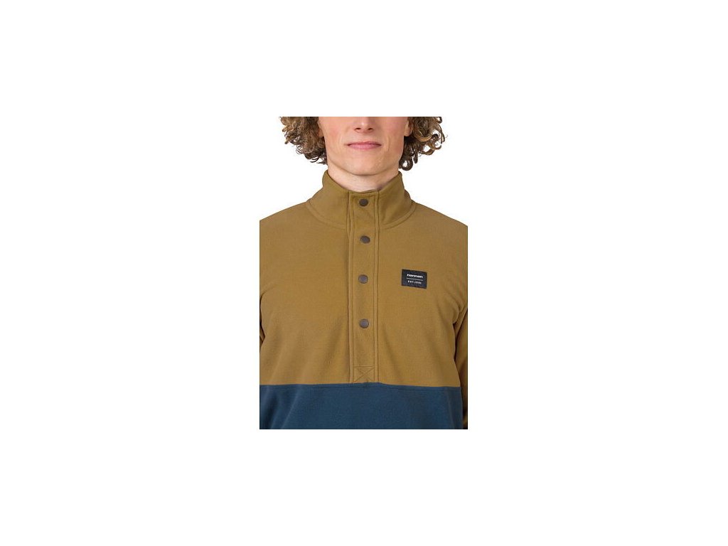 Mikina z jemného, elastického a hřejivého fleece materiálu Polarsoft Micro, který má zároveň nízkou hmotnost a dlouhotrvající životnost. Střih řešený přes hlavu, částečné zapínání mikiny na patentky, které přechází do zvýšeného komfortního stojáčku. Anatomicky tvarované rukávy a spodní okraj jsou lemované gumou. Retro design a barevné členění čerpá z původních kořenů značky Hannah.
