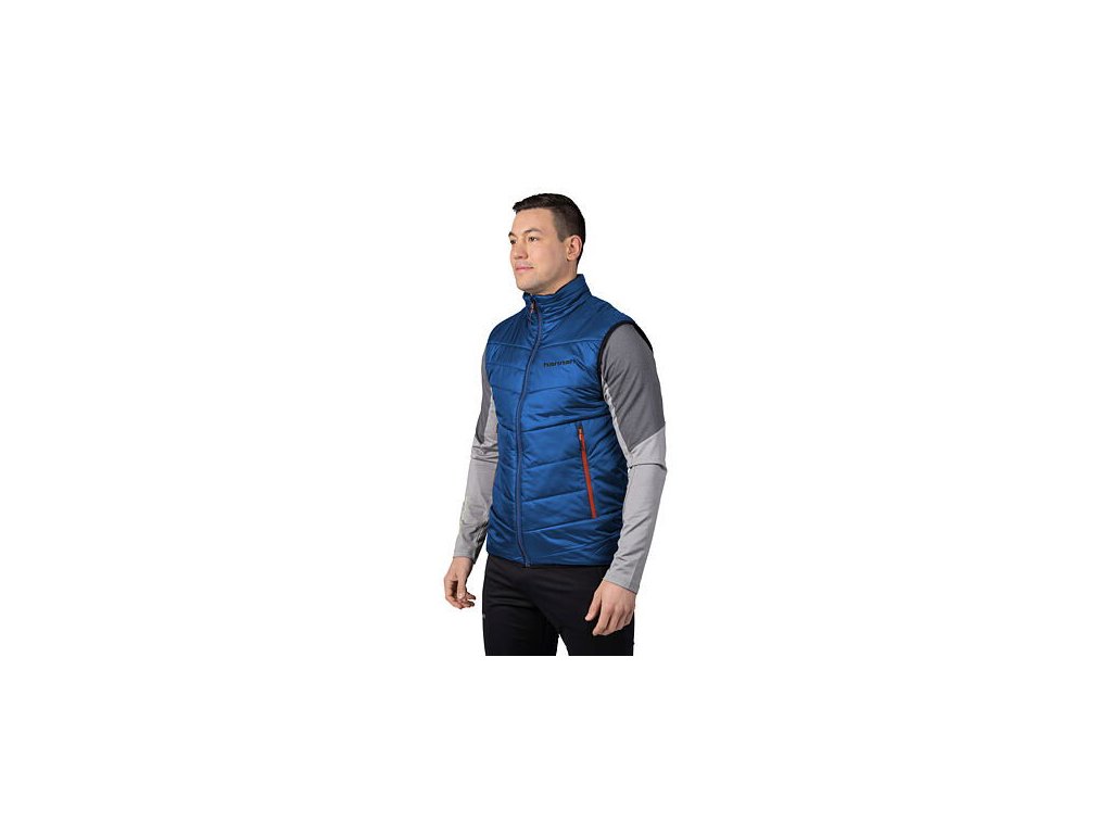Sportovní střih zateplovací vesty má svrchní ultra lehký, pevný a zároveň prodyšný materiál Airlite AC a na povrchu vodoodpudivou úpravu. Vnitřní izolační výplň Dupont Sorona Aura je lehká, prodyšná a snadno tvarovatelná. Snižuje dopad na životní prostředí tím, že využívá 37% obnovitelných rostliných složek. Vesta má reverzní dlouhý zip zakončený do stojáčku a dvě hlavní kapsy na zip.