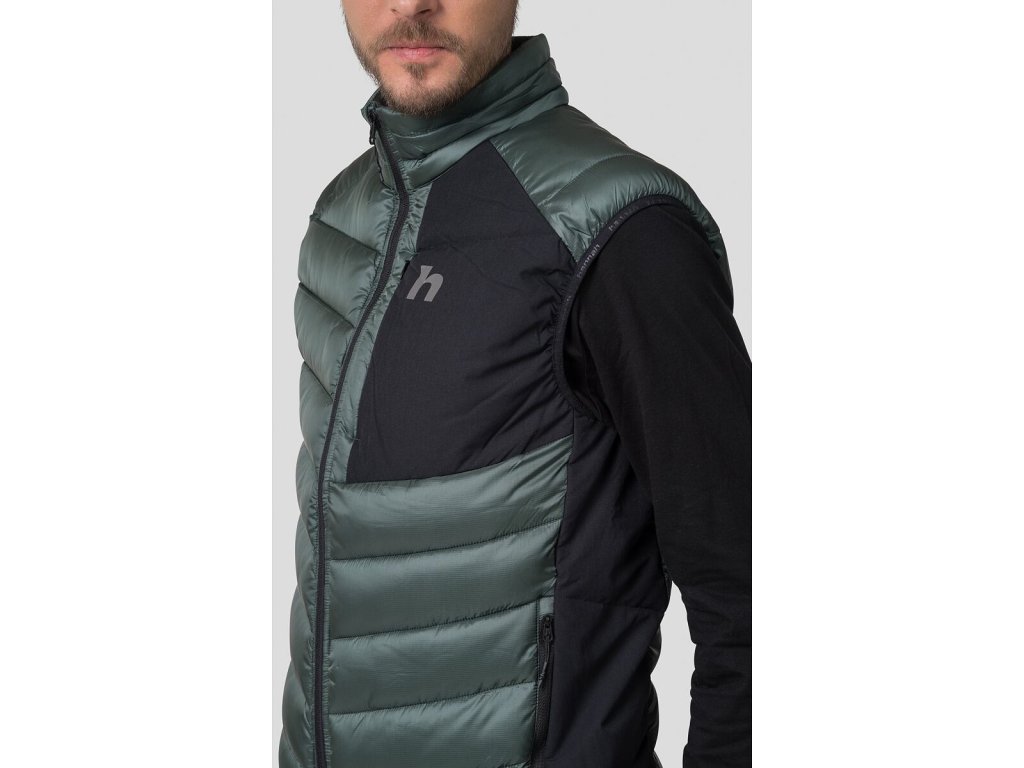Zateplení je řešeno výplní s obsahem vlákna Sorona Aura a technologií HL Tech – DOWN LIKE. Díky transportnímu obalu stačí jen sáhnout do batohu a vestu máte vždy po ruce. Reverzní dlouhý zip či spodní kraj lemovaný gumou jsou praktickými prvky, stejně jako hrudní kapsa se skrytým zipem či hlavní kapsa na zip.