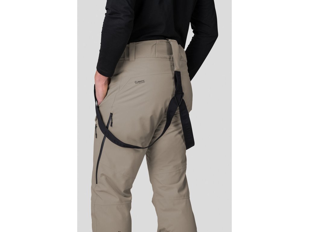 Membrána Climatic Active Stretch s vodním sloupcem 15 000 mm spolu s podlepenými švy zajišťuje nepromokavost materiálu a díky použité technologii čtyřsměrně strečové tkaniny umožňuje neomezený pohyb. K pohodlí na svahu přispívají anatomicky tvarovaná kolena, částečně zateplený zadní díl, zvýšený sed, regulovatelný obvod pasu či odepínatelné šle.