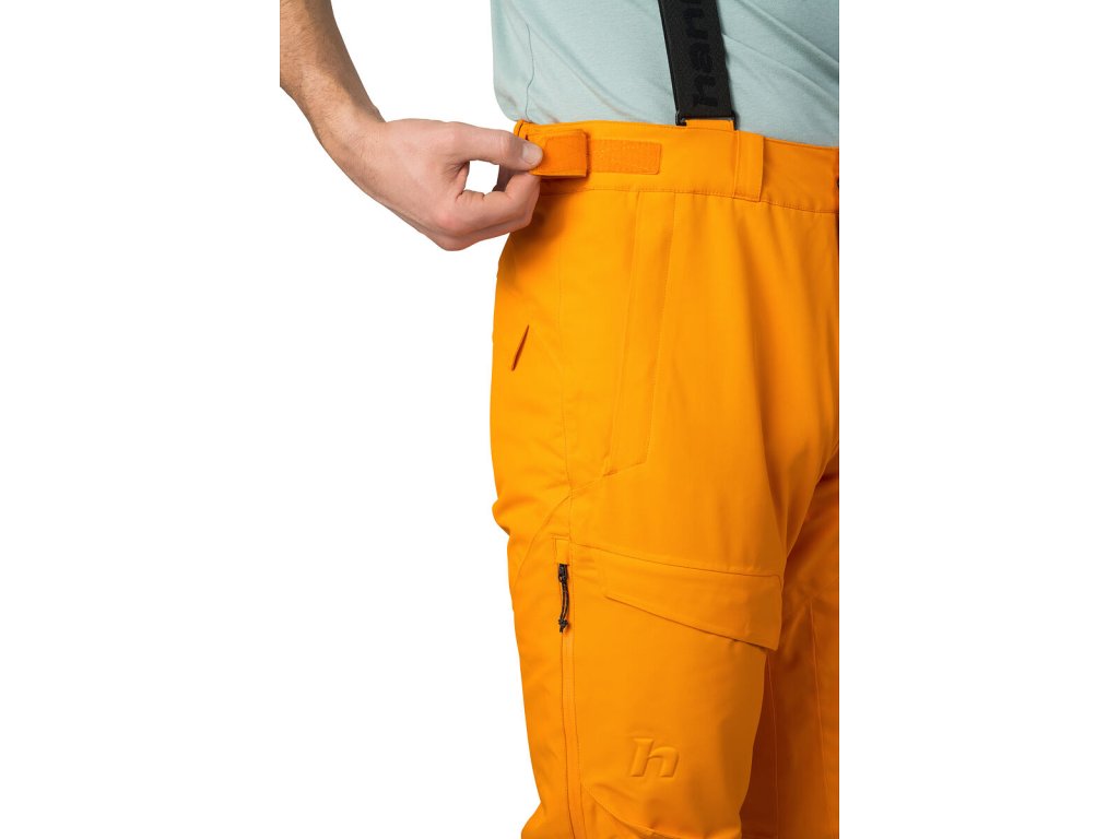 Zadní díl je částečně zateplený a zvýšený sed chrání vaše záda před chladem. Kalhoty dobře sedí - pas si můžete regulovat pomocí pásku na suché zipy a anatomicky tvarovaná kolena přispívají k pohodlnému nošení. Díky podlepeným švům, voděodolným zipům, odvětrávání a sněhovým manžetám v nohavicích zůstanete v suchu celý den.