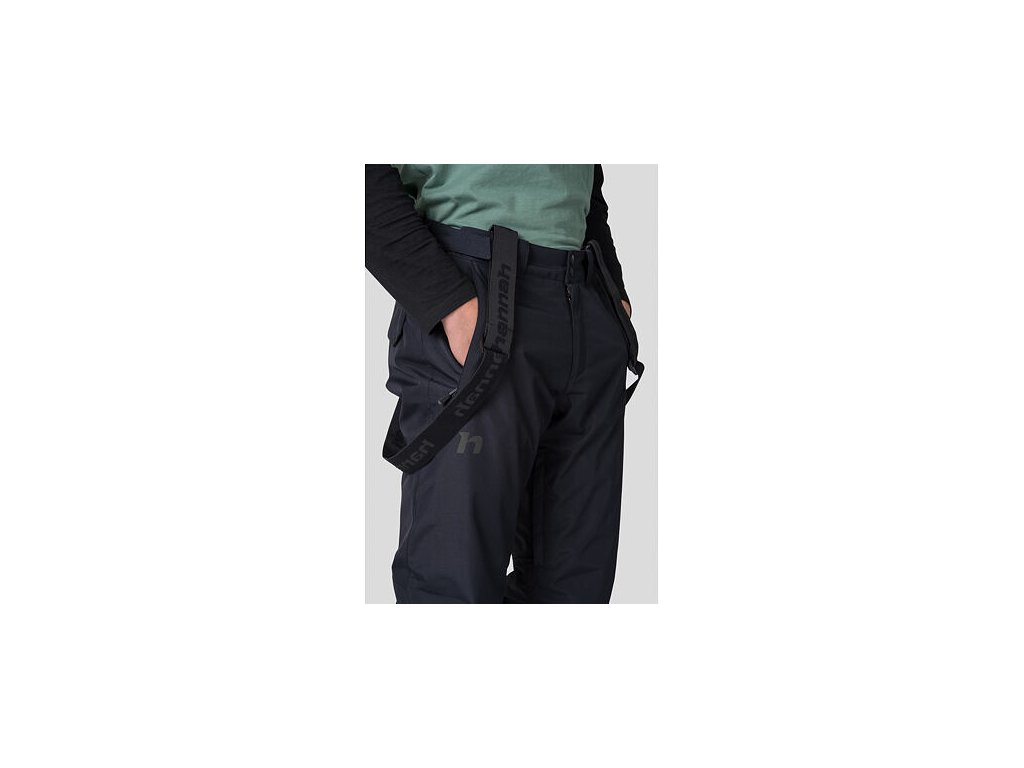 Pánské lyžařské kalhoty Hannah Slater. Membrána Resstex s vodním sloupcem 10 000 mm spolu s podlepenými švy zajišťuje nepromokavost materiálu. K pohodlí na svahu přispívají anatomicky tvarovaná kolena, zvýšený sed, regulovatelný obvod pasu páskem s gumou na suché zipy či odepínatelné šle. Odvětrávání na vnitřní straně nohavic není pouze praktickou vychytávkou, ale také designovým prvkem. Sněhová manžeta v nohavici nesmí chybět.