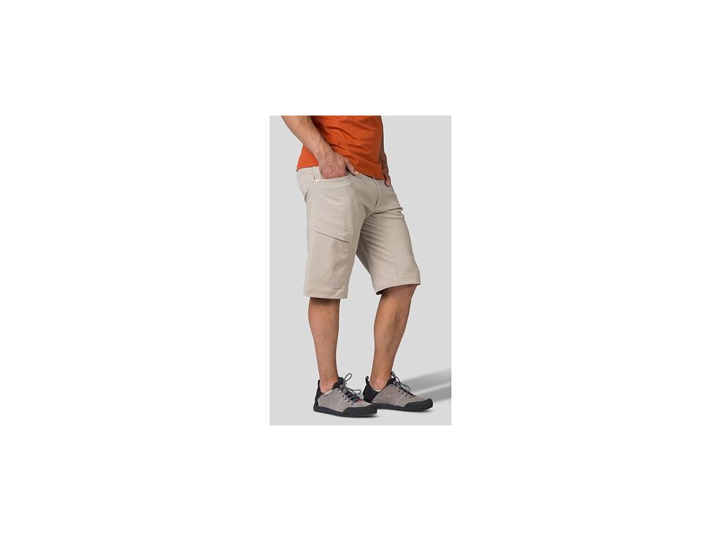 Dvě hlavní kapsy vpředu a dvě v zadní části. Na nohavici je přidaná jedna dobře přístupná kapsa s krycí légou. Pas s poutky na pásek. Kraťasy mají delší střih nad kolena a využijete je na cestování, do přírody či na volný čas.