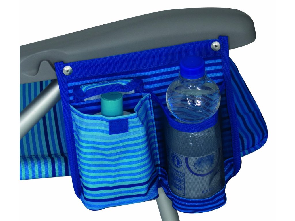 Sedák plážového křesla má ideální rozměry 49 x 44 cm a je umístěn nízko u země (23 cm), což zajišťuje pohodlné sezení, které je zároveň stabilní. Díky tomuto nízkému profilu je křeslo ideální pro relaxaci na pláži nebo na trávníku, a přitom vám nebrání v pohodlném pohledu na moře nebo oblíbený sportovní zápas. Křeslo je navíc vybaveno praktickými úložnými prostory – velkým úložným prostorem na zip na zadní straně a boční taškou, které vám umožní uložit osobní věci, ručníky, knihy nebo sluneční krémy.