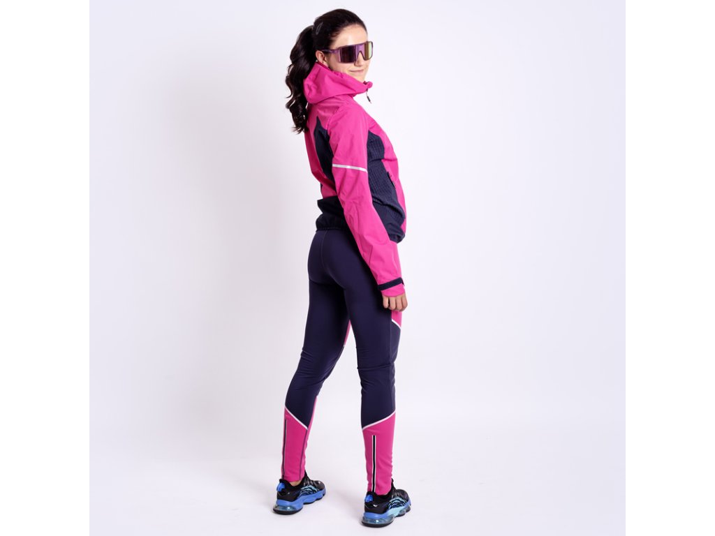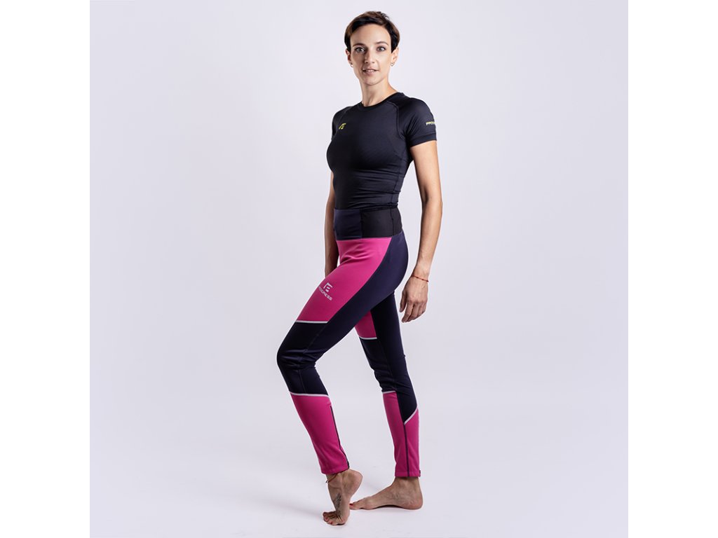 Dámské zimní elastické kalhoty PRODIGY LADY jsou primárně určeny pro běžecké lyžování nebo běh v zimním období, ale vzhledem k jejich unikátním vlastnostem pro ně můžete najít uplatnění i při dalších sportovních aktivitách v chladném počasí. Anatomický střih s plochými švy a pružnost materiálu zajišťují dostatečnou volnost pohybu. Přední část je opatřena pružnou softshellovou membránou s parametry voděodolnost 10 000 mm a prodyšnost 10 000 g. Zadní stranu tvoří pružný a prodyšný materiál s vysokou odolností a kvalitním odvodem vlhkosti, který je zevnitř počesaný. Kalhoty mají pohodlný vysoký pas se stahovací tkaničkou. Na zadním díle pasu najdete síťované kapsy na drobnosti a malou kapsičku na skrytý zip. Na spodním konci nohavic mají kalhoty zipy pro snadnějsí oblékání a protiskluzový silikonový print na vnitřním lemu. Samozřejmostí jsou reflexní prvky, které zaručí větší viditelnost, a tudíž větší bezpečnost i pokud sportujete za zhoršených světelných podmínek.