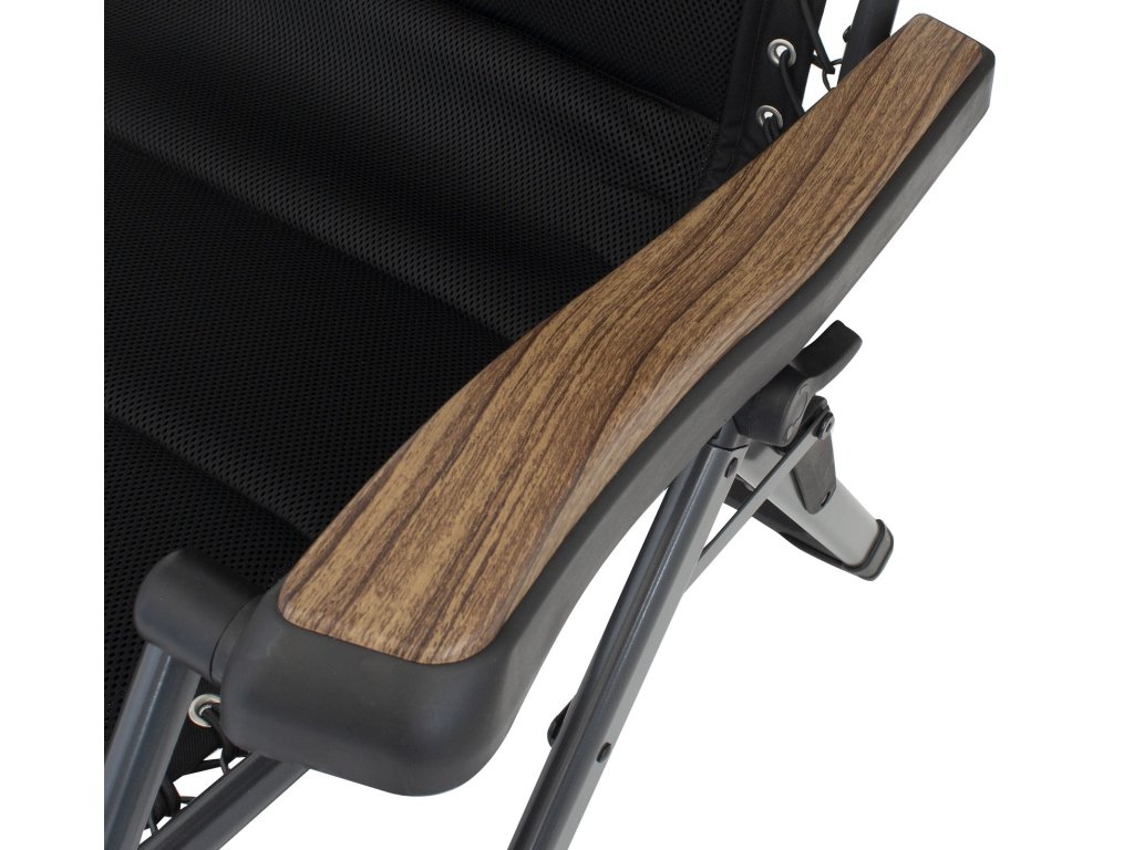 Křeslo je vybaveno extra širokými područky s imitací dřeva, které nejenže přispívají k pohodlí, ale také dodávají křeslu elegantní vzhled. Tento designový prvek kombinuje moderní materiály s tradičním vzhledem dřeva, což přidává křeslu na atraktivitě a dokonale se hodí do různých venkovních prostředí.