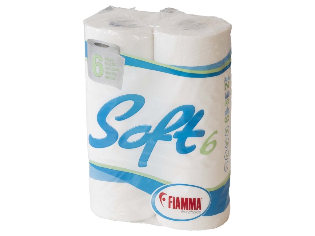 Rozkladový toaletní papír Fiamma Soft 6 je vhodný pro všechny přenosné a fixovatelné toalety. Díky svému extra měkkému provedení je šetrný, rychle se rozpouští, čímž zabraňuje ucpávání toalety. Balení obsahuje celkem 6 dvouvrstvých rolí s 300 útržky.