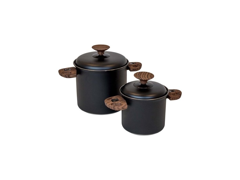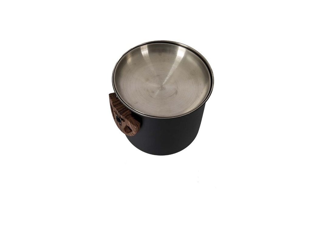 Sada hrnců Bo-Camp Hading Compact z nerezové oceli je navržena pro pohodlné vaření v přírodě. Každý hrnec má teplovzdorná výklopná držadla a poklici s teplovzdornou úchytkou, což zajišťuje bezpečnou manipulaci. Černá barva nerezové oceli a držadla v imitaci dřeva dávají hrncům industriální vzhled. Po použití lze výklopná držadla snadno sklopit, takže je možné hrnce naskládat do sebe a ušetřit místo. Tyto úzké a vysoké hrnce jsou ideální pro plynové hořáky a lze je použít i na sklokeramických a elektrických vařičích.