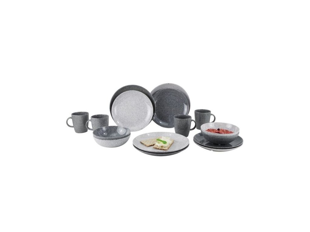 Elegantní sada nádobí Gimex Solid Line vyrobená z vysoce kvalitního melaminu v originální žulové barvě skvěle ozdobí Váš jídelní stůl. Nádobí je vybaveno protiskluzovým dnem, které zabrání zbytečnému hluku při manipulaci a zaručí perfektní přilnavost. Sada nádobí je lehká, vhodná do myčky, odolná proti poškrábání a téměř nerozbitná. Nádobí je vhodné zejména do karavanu, obytného vozu či kempu. Součástí sady nádobí je i praktická taška.