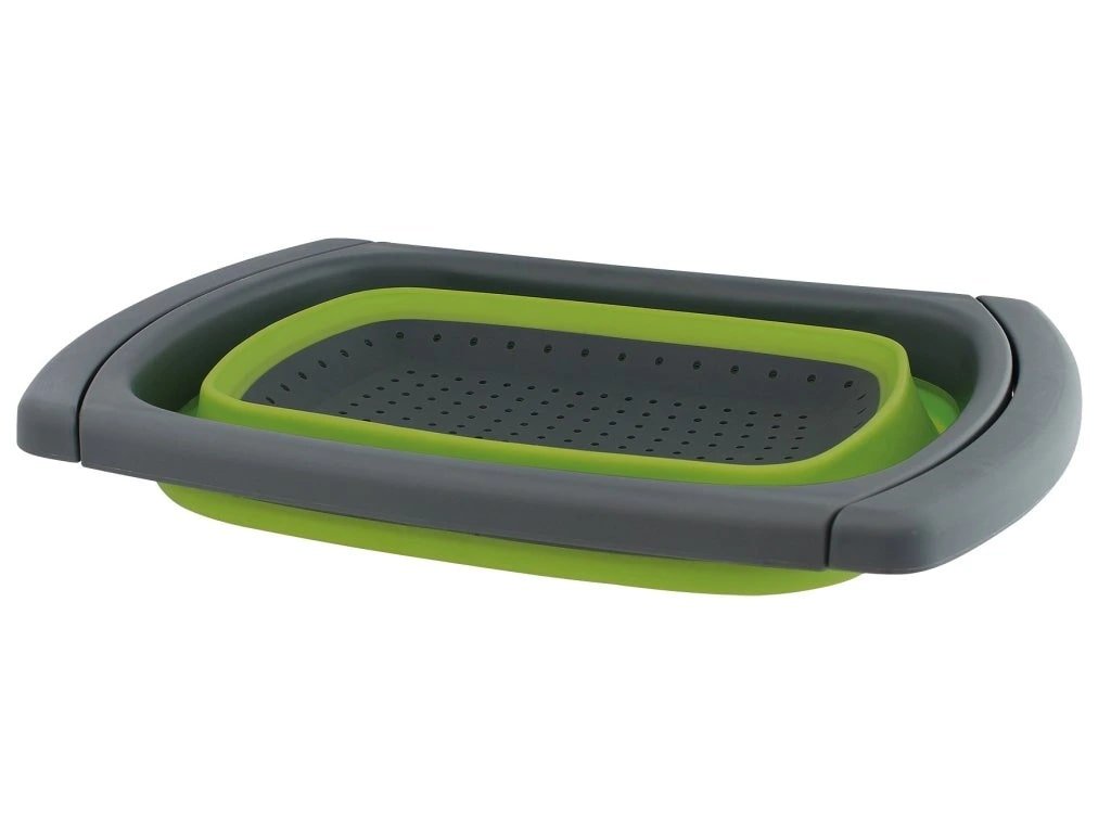 Pokud hledáte praktický a skladný cedník, který vám usnadní odkapávání nádobí, zeleniny nebo ovoce, Eurotrail skládací cedník nad dřez je ideálním řešením. Tento inovativní cedník je navržen tak, aby se vešel nad každý dřez, a díky vysouvacím ramenům ho lze snadno umístit a přizpůsobit. Navíc jeho skládací design umožňuje snadné uskladnění, což je ideální pro domácnosti i pro kempování, kde je prostor omezený.