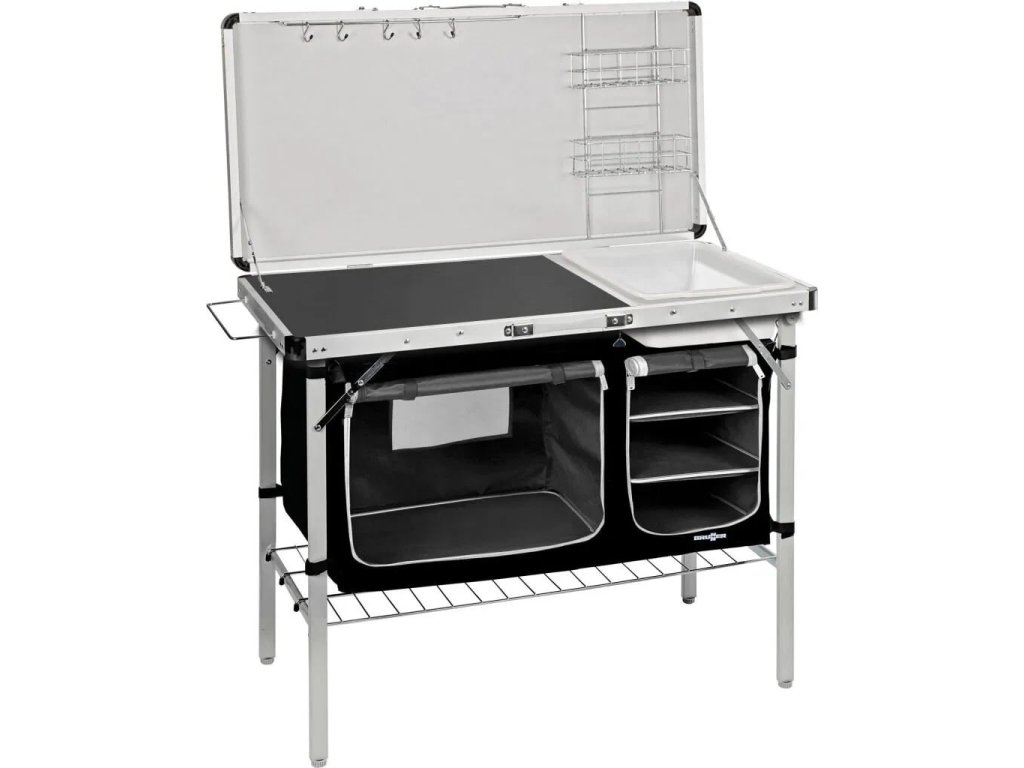 Brunner Drive In Black je velice univerzální kuchyňská skříňka s velkou pracovní plochou, velkým úložným prostorem a řadou dalších funkcí, které vám usnadní vaření v kempu.Parametry: