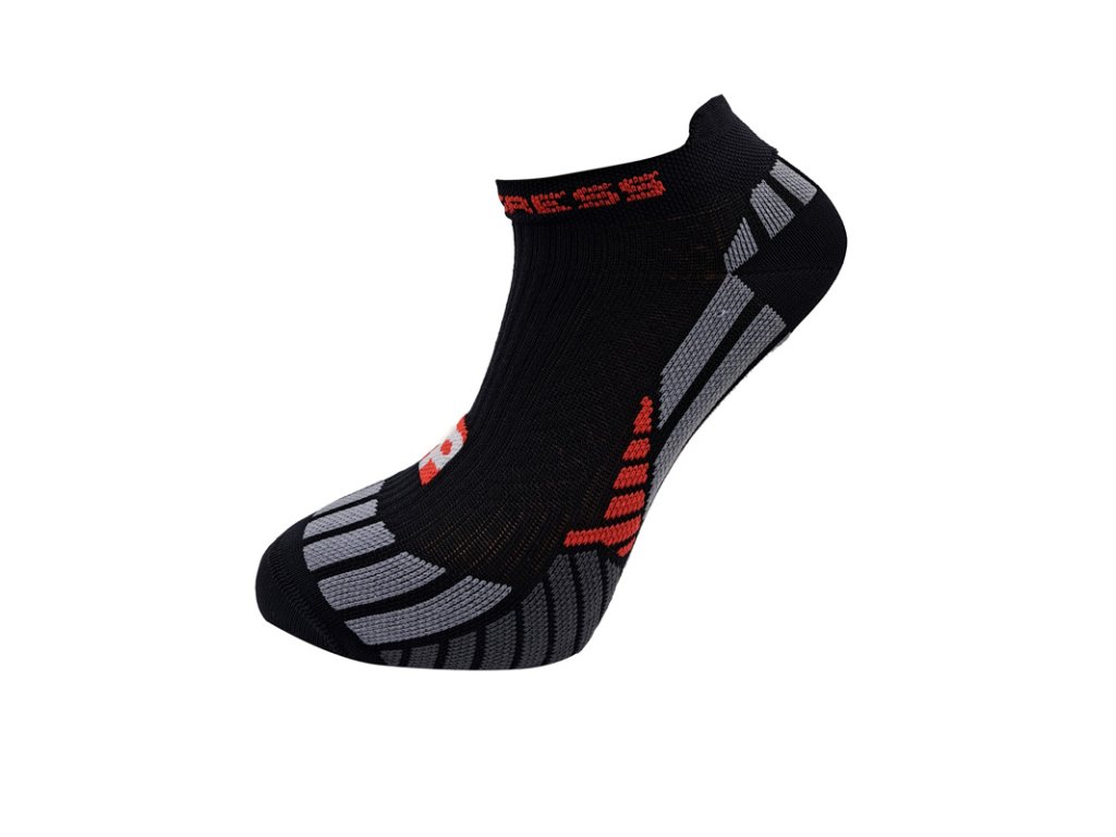 Ponožky SNAKER SPORT SOX jsou určená zejména pro běh. Charakteristickým znakem je pro ně anatomičnost a perfektní posazení na noze. Běžný elastický pásek v chodidle je nahrazen pružným materiálem v celé ponožce a tak se na nohou usadí doslova jako druhá kůže. Tenký materiál předurčuje ponožku pro letní použití, maximální efektivity odvodu potu dosahují ponožky zejména s těmi modely obuvi, které jsou schopny odvětrávání i v chodidlové části. Celoelastická konstrukce je doplněna o jemné odvětrané plyšování v oblasti Achilovky a chodidle. Pata a špice jsou zesílené, samozřejmostí je plochý šev. Použitý polyester může připomínat bavlnu, zachovává si však potřebnou funkčnost.