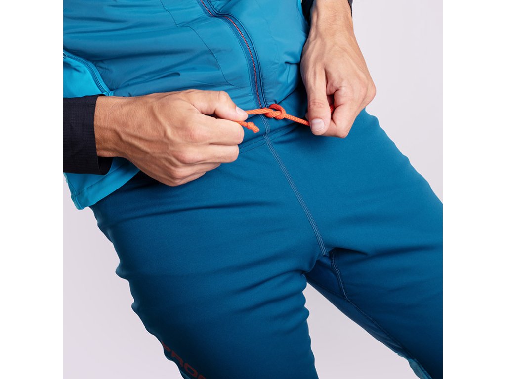 Pánské zimní elastické kalhoty SNOWBULL jsou primárně určeny pro běžecké lyžování nebo běh v zimním období, ale vzhledem k jejich unikátním vlastnostem pro ně umůžete najít uplatnění i při dalších sportovních aktivitách v chladném počasí. Kalhoty mají skvěle padnoucí, pohodlný střih s plochými švy, přední část je opatřena pružnou softshellovou membránou, zadní část tvoří zateplený pružný materiál. V pase najdete speciální elastickou gumu se silikonem a tkaničkou. Na spodním konci nohavic mají kalhoty zipy pro snadnějsí oblékání a protiskluzovou silikonovou gumu. Samozřejmostí jsou reflexní prvky, které zaručí větší viditelnost, a tudíž větší bezpečnost i pokud sportujete za zhoršených světelných podmínek.