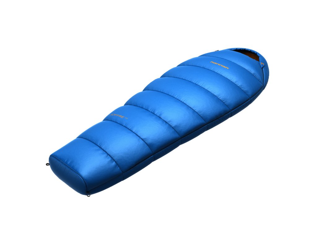 Anatomicky tvarovaný spacák má jednou rukou ovladatelné stahování kapuce a a vnitřní límec s regulací. Obousměrný zip je krytý vyztuženou légou proti zadrhávání a légou proti úniku tepla. Pojistka proti samovolnému rozepnutí zipu je u téměř všech našich modelů spacáků samozřejmostí.