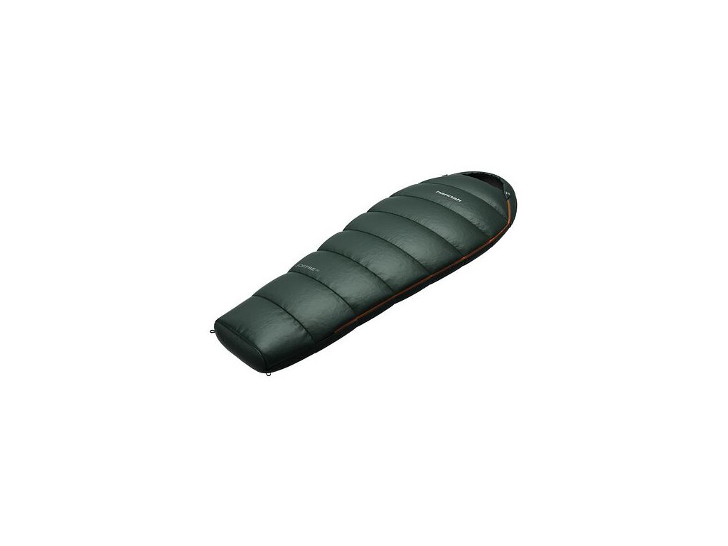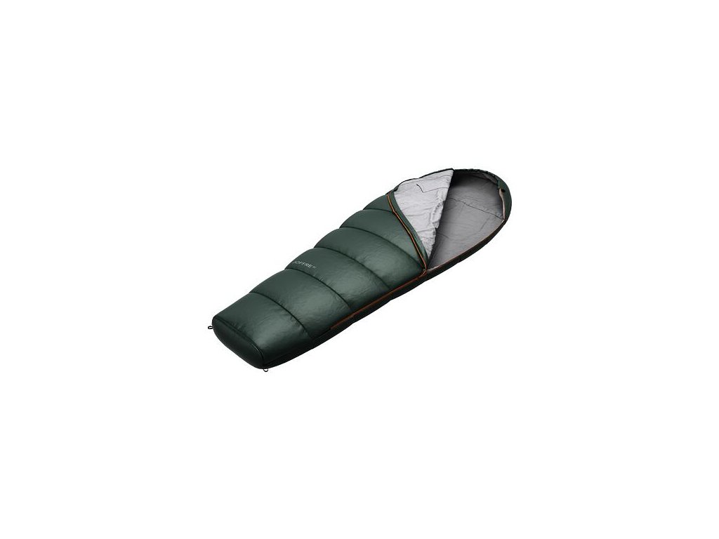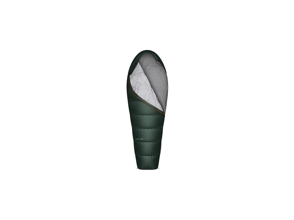 Anatomicky tvarovaný spacák má jednou rukou ovladatelné stahování kapuce a vnitřní límec s regulací. Obousměrný zip je krytý vyztuženou légou proti zadrhávání a légou proti úniku tepla. Pojistka proti samovolnému rozepnutí zipu je u téměř všech našich modelů spacáků samozřejmostí.