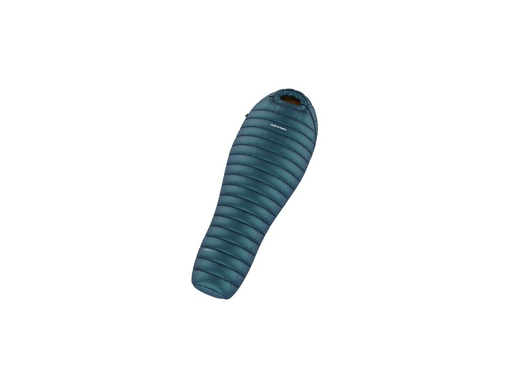 Vrchní ripstop nylonový materiál má DWR úpravu, díky které je látka nenasákavá a vodoodpudivá, takže výplň zůstává suchá. Zip ve tvaru L krytý vyztuženou légou proti zadrhávání a také izolační légou chránicí před únikem chladu, navíc zip lze celý rozepnout a využít spacák i jako péřovou deku. Pojistku proti samovolnému rozepnutí zipu oceníte, pokud se při spánku hodně vrtíte.