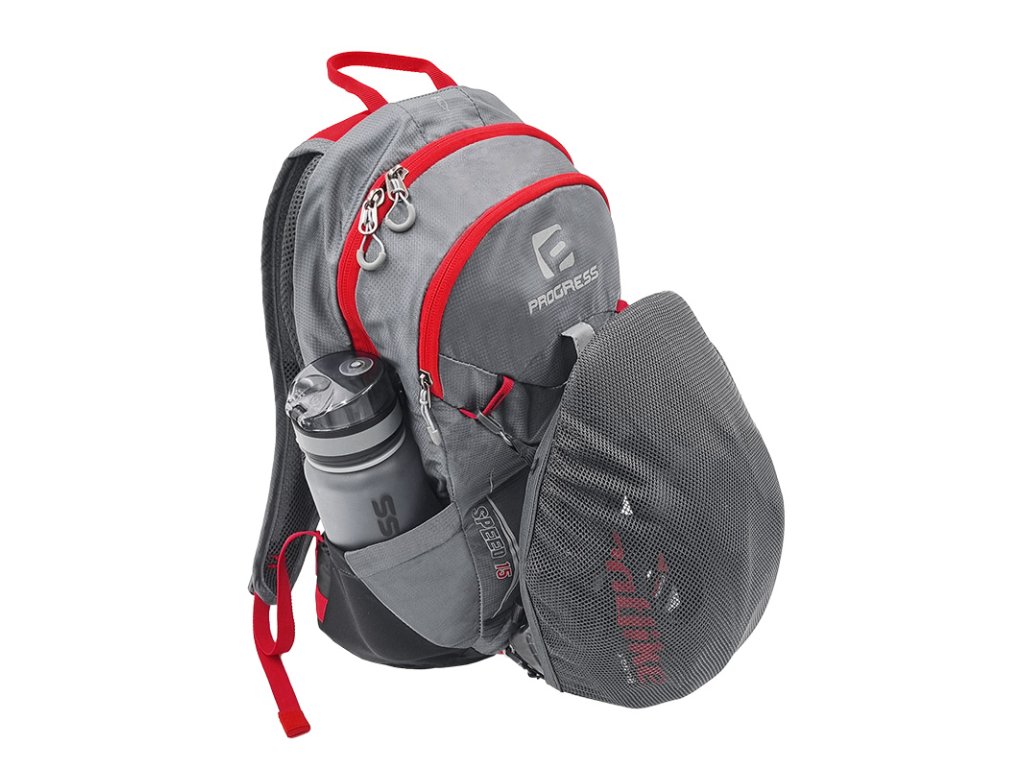 Propracovaný cyklistický batoh SPEED 15 s rozmanitým členením se stane rychle vaším nepostradatelným společníkem na všech cyklovýletech. Batoh má polstrované zádové panely, pohodlné nastavitelné polstrované ramenní popruhy s hrudním páskem a také nastavitelný bederní pás. Hlavní prostor zapínaný na zip lze využít pro umístění vodního rezervoáru nebo pro uložení věcí potřebných pro vaše cyklovýlety. Batoh má také další přední horní kapsu na zip a dvě boční jednoduché kapsy. Ve spodní kapse najdete síťku pro uložení helmy. Samozřejmostí je poutko na pověšení a reflexní prvky pro větší bezpečnost.- polstrované zádové panely- dvě boční kapsy- kapsa na vodní rezervoár- síťka pro uchycení helmy - nastavitelné ramenní popruhy- voděodolná úprava bez SPF- reflexní prvkymateriál: 210D nylon + 420D polyesterobjem: 15Lváha: 0,4 kgrozměr: 25x45x15cmDoplňkové parametry