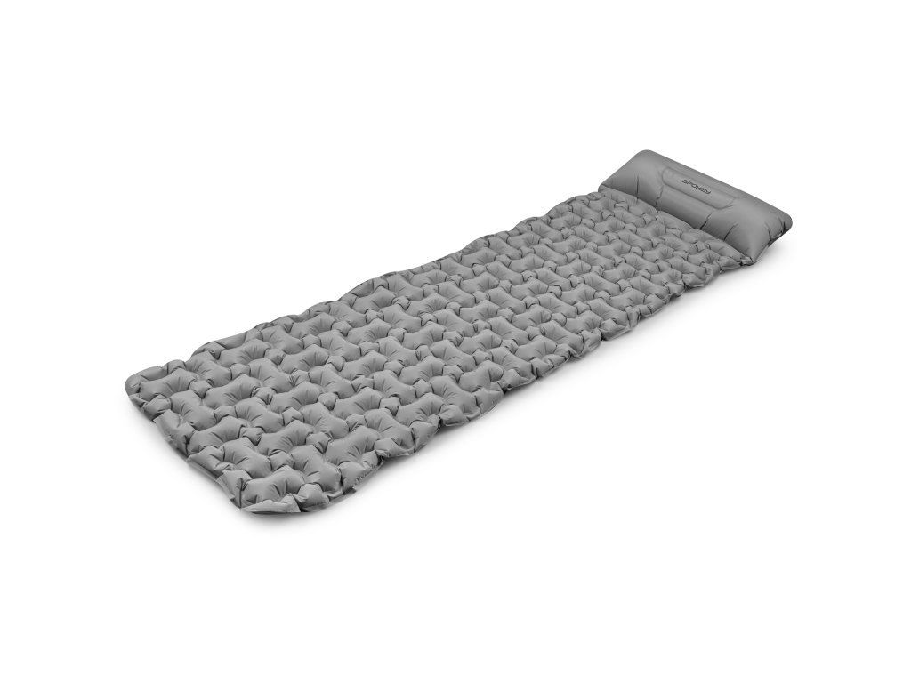 Spokey AIR BED PILLOW BIG Nafukovací matrace s polštářkem, 213 x 62 x 6 cm, R-Value 2.5, šedá