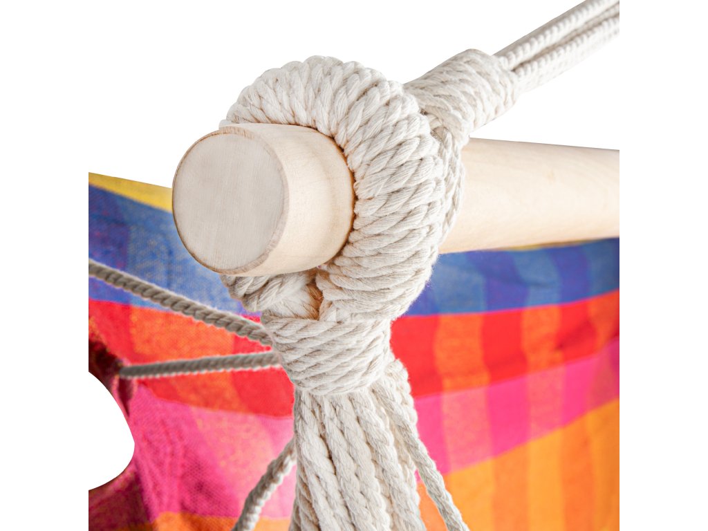 Brazilská houpací síť – sedátko Spokey BENCH DELUXE, to je víc než jen obyčejná zahradní houpací síť. Je do sedátko pro dvě osoby vyrobené z přírodních materiálů – prodyšné bavlny, která je velmi měkká a příjemná na dotek. To ale nejsou všechny výhody Spokey BENCH DELUXE! Dokonale se vám přizpůsobí a je velmi stabilní. Jeho barvy dodají okolnímu prostředí charakter. S takovou houpací síti – sedátkem poskočí vaše chvilky odpočinku na ještě vyšší úroveň!