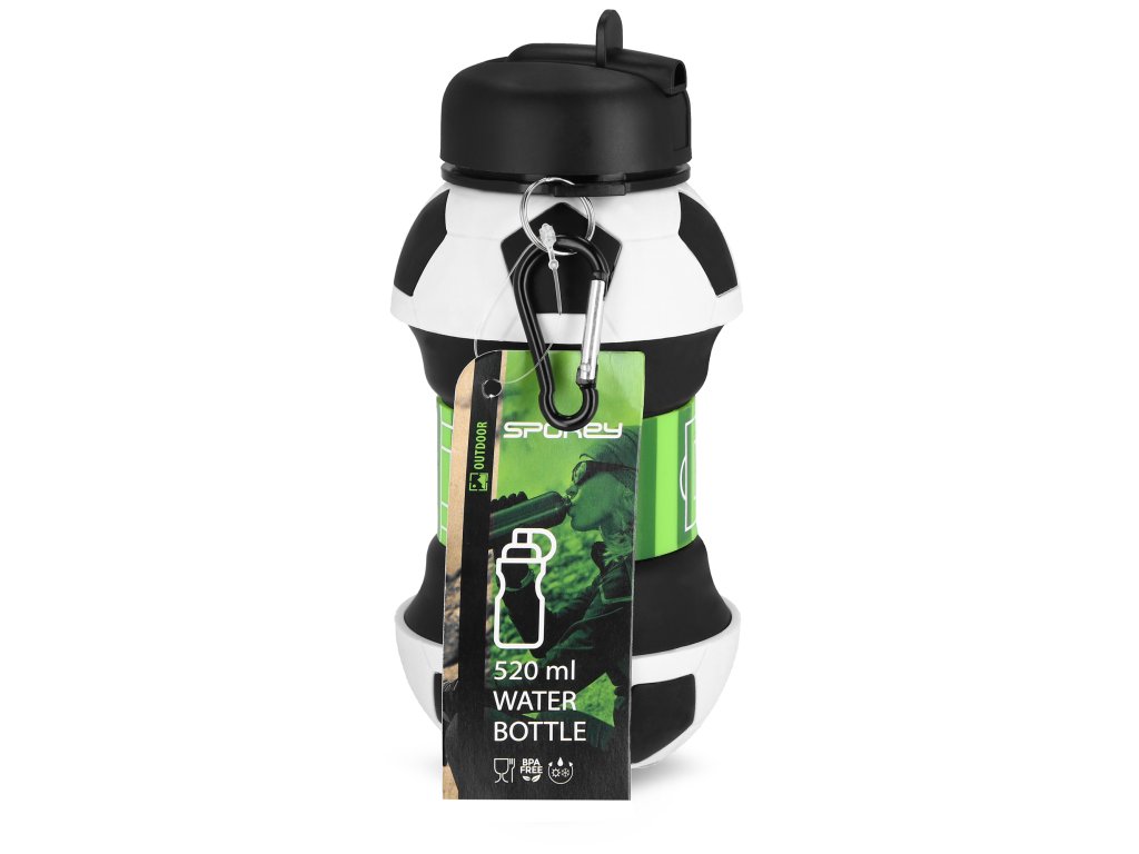 Spokey CORT Skládací silikonová láhev, 520 ml, fotbalový míč
