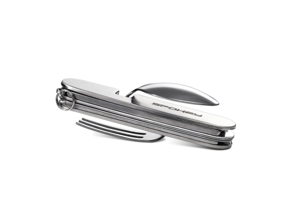 - Multifunkční příbor 4v1: lžíce, vidlička, nůž a otvírák - místo čtyř samostatných příborů máte vše v jednom.