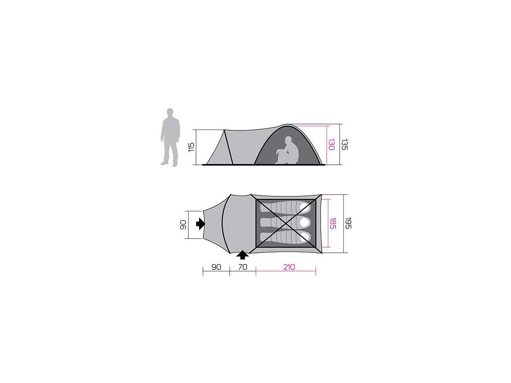 - Rozměr vnějšího stanu 195 x 370 x 135 cm