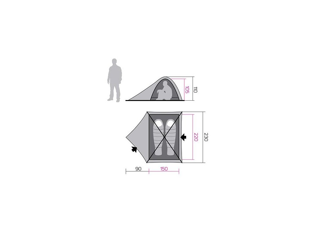 - Rozměr vnitřního stanu 220 x 150 x 105 cm