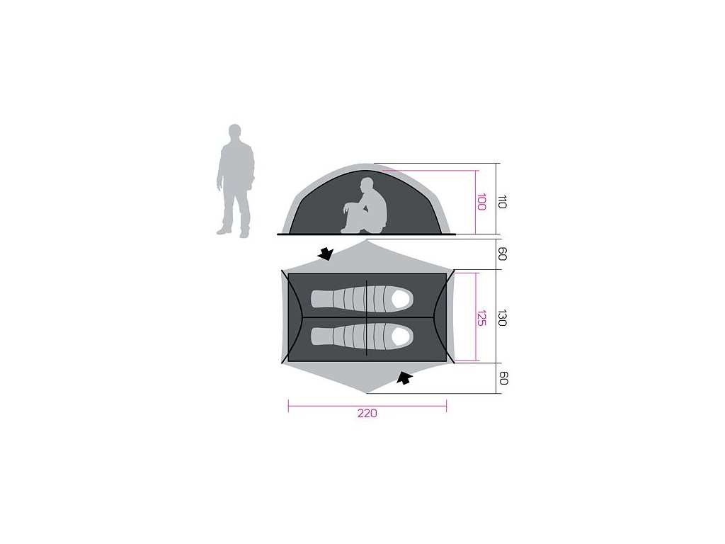 - Rozměr vnějšího stanu 220 x 250 x 110 cm