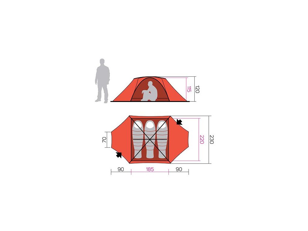 - Rozměr vnitřního stanu 220 x 185 x 115 cm
