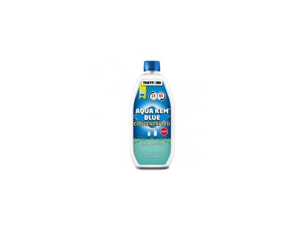Koncentrovaná WC chemie Thetford Aqua Kem Blue je účinnější alternativa ke klasické chemii Aqua Kem Blue. 1 lahvička chemie Aqua Kem Blue Concentrated obsahuje 0,78 litru chemie a vystačí na 13 dávek, což je totožné jako u lahve běžné chemie o objemu 2 litry.