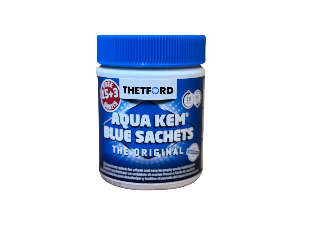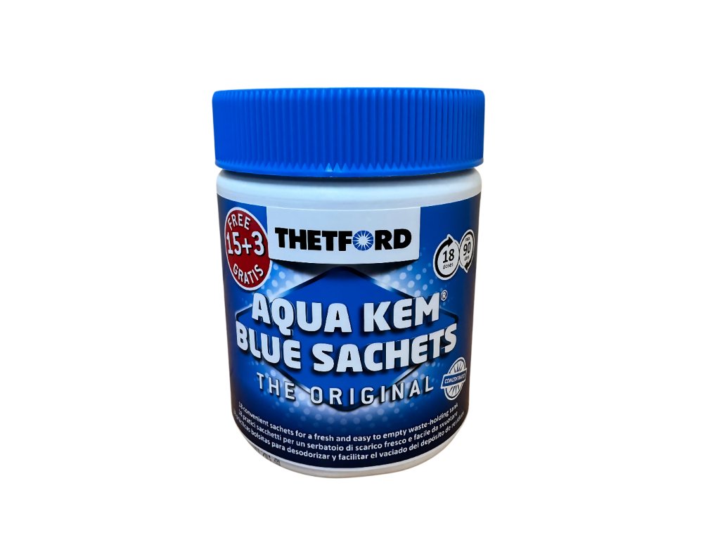 Thetford Aqua Kem Blue Sachets jsou předem nadávkované sáčky pro snadnou a hygienickou údržbu odpadní nádrže. Balení obsahuje celkem 18 sáčků – k původním patnácti byly přidány tři.