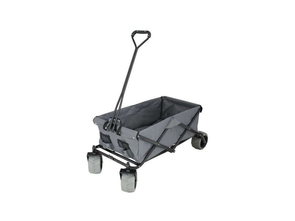 Vozík je vyroben z kvalitních materiálů a má odolnou ocelovou konstrukci, která zajišťuje stabilitu a dlouhou životnost. Šedá barva vozíku je nejen stylová, ale i nenáročná na údržbu, což z něj dělá ideálního partnera pro každodenní použití. Po použití vozík snadno složíte do kompaktních rozměrů (76 × 50 × 18 cm), takže nezabere mnoho místa a je připraven na další výlet nebo skladování.